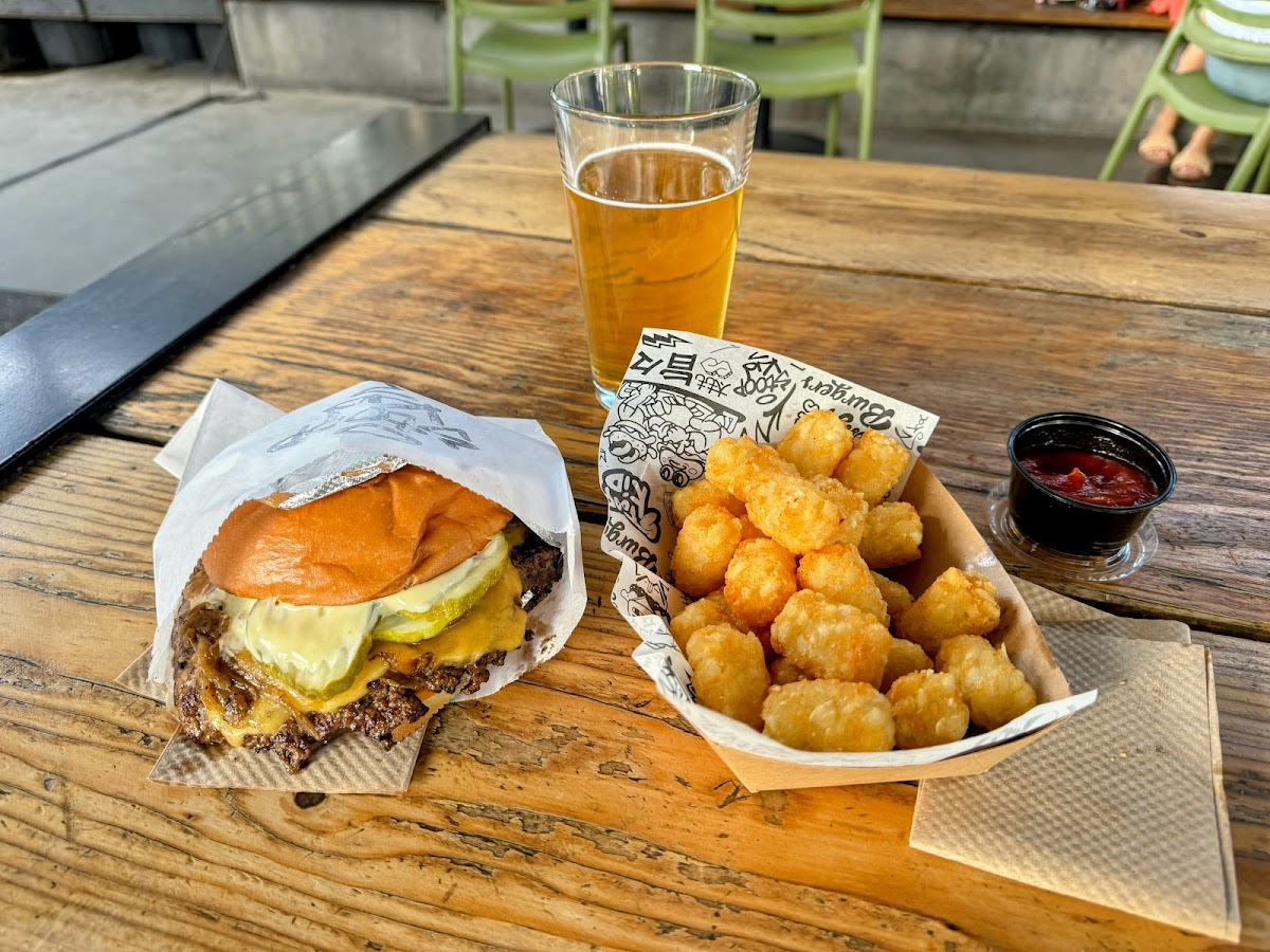 The food here is mouthwatering good! From the burgers to the tots to the mac and cheese balls, so good! The service was friendly, but when we arrived, we waited in line behind what seemed to be friends/a girlfriend of a worker (assuming, but they were kissing). I don’t mind that at all! But after waiting for them to be done after 3-5 minutes, it seemed a little too much. Still highly recommend to check out this spot!